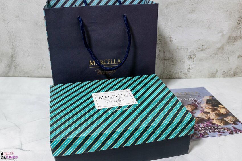 先來介紹今年新推出的限量禮盒26入手工餅乾禮盒,提袋與包裝盒顏色相互呼應,藍綠線條與白色LOGO搭配,整個盒裝相當有質感。
