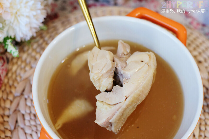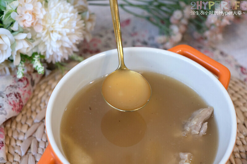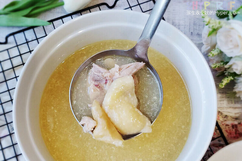 喝起來風味真的很濃郁,感覺濃濃的雞湯精華都鎖在這碗湯中啦!也因為有加了豬皮去熬湯,入口後也充滿膠質感,而且是都完全化在湯裡看不到固體的豬皮了唷!一喝下肚就有暖胃感,使用帶雞皮的雞腿,一樣沒有骨頭方便入口超貼心~