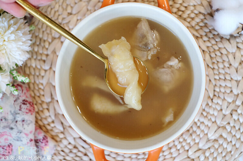 而且裡面的雞肉一定要說一下! 竟然是去骨的雞腿肉!會不會太貼心啦,裡頭的料還有一個大香菇、桂圓和火腿肉等,加了花膠之後湯頭裡也富含滿滿膠質,讓整碗雞湯更加的美味!沒喝過的話非常推薦喔👍