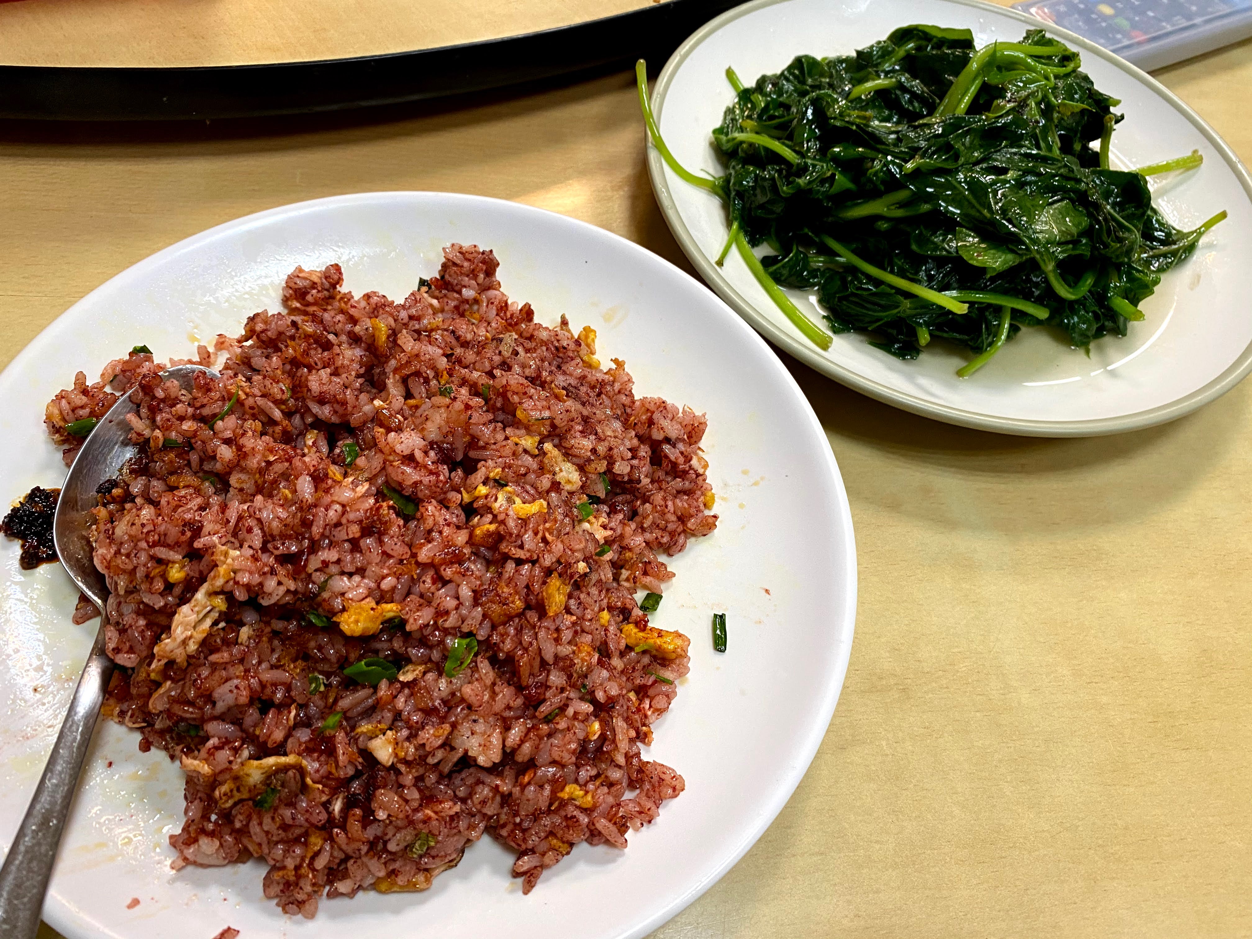 點了這裡很有名的紅槽炒飯和炒地瓜葉