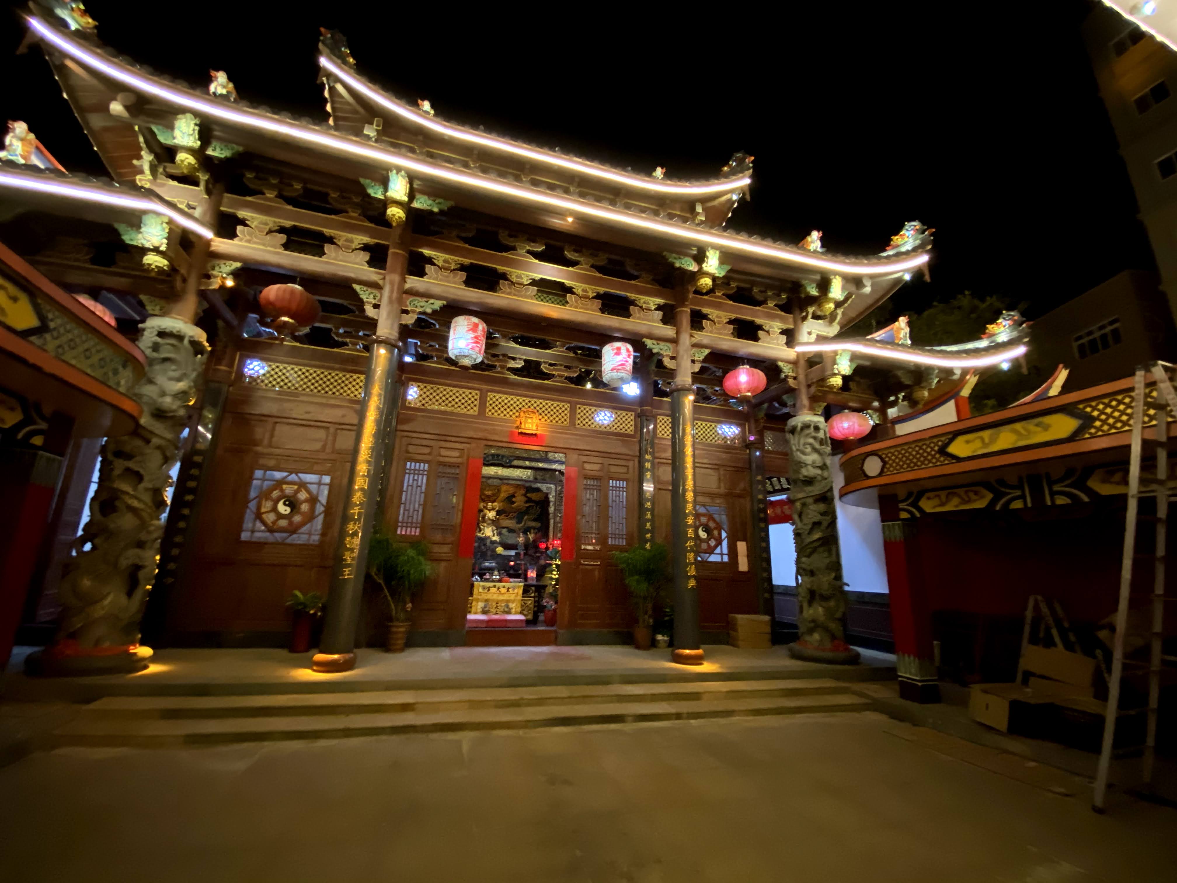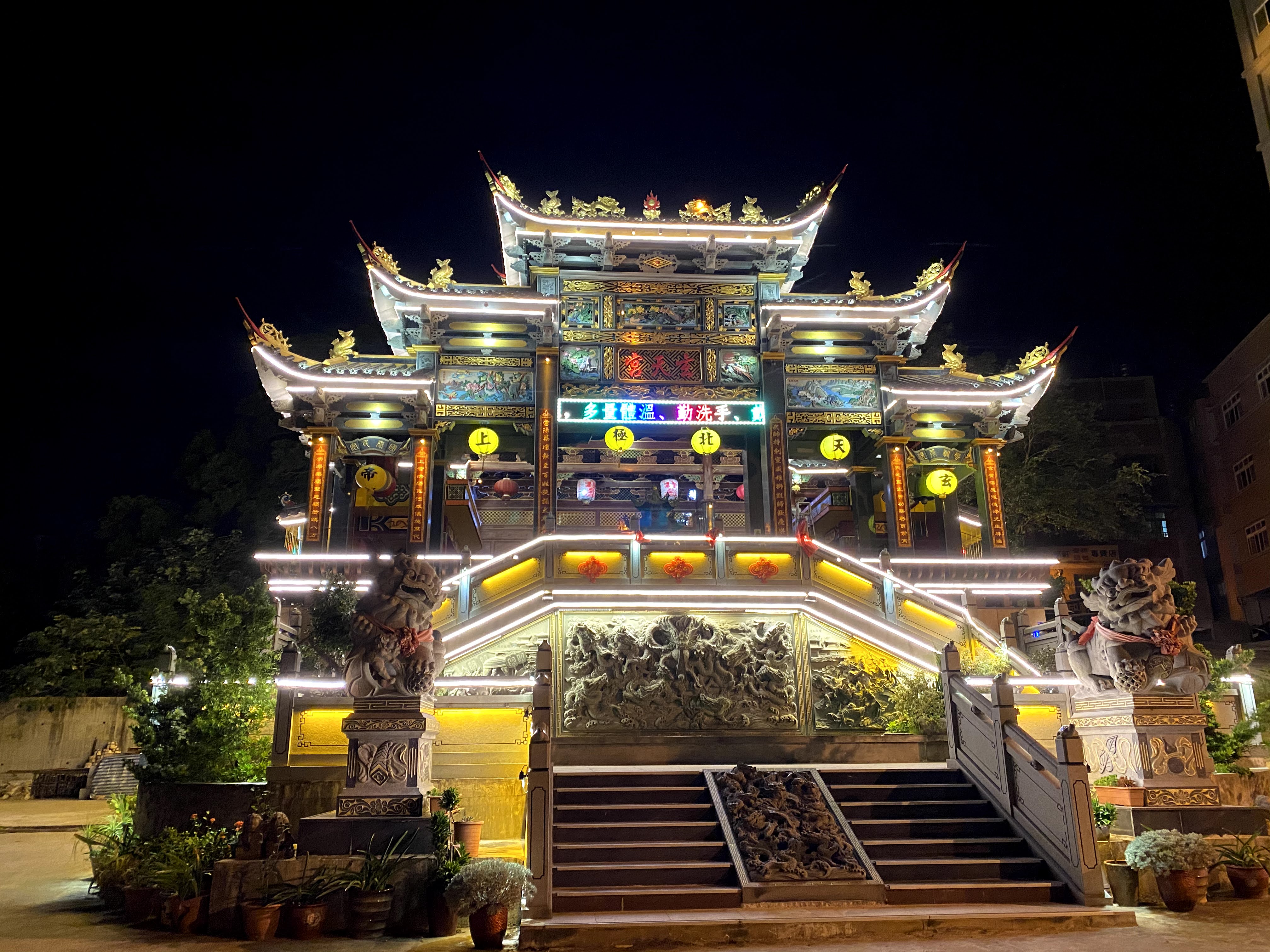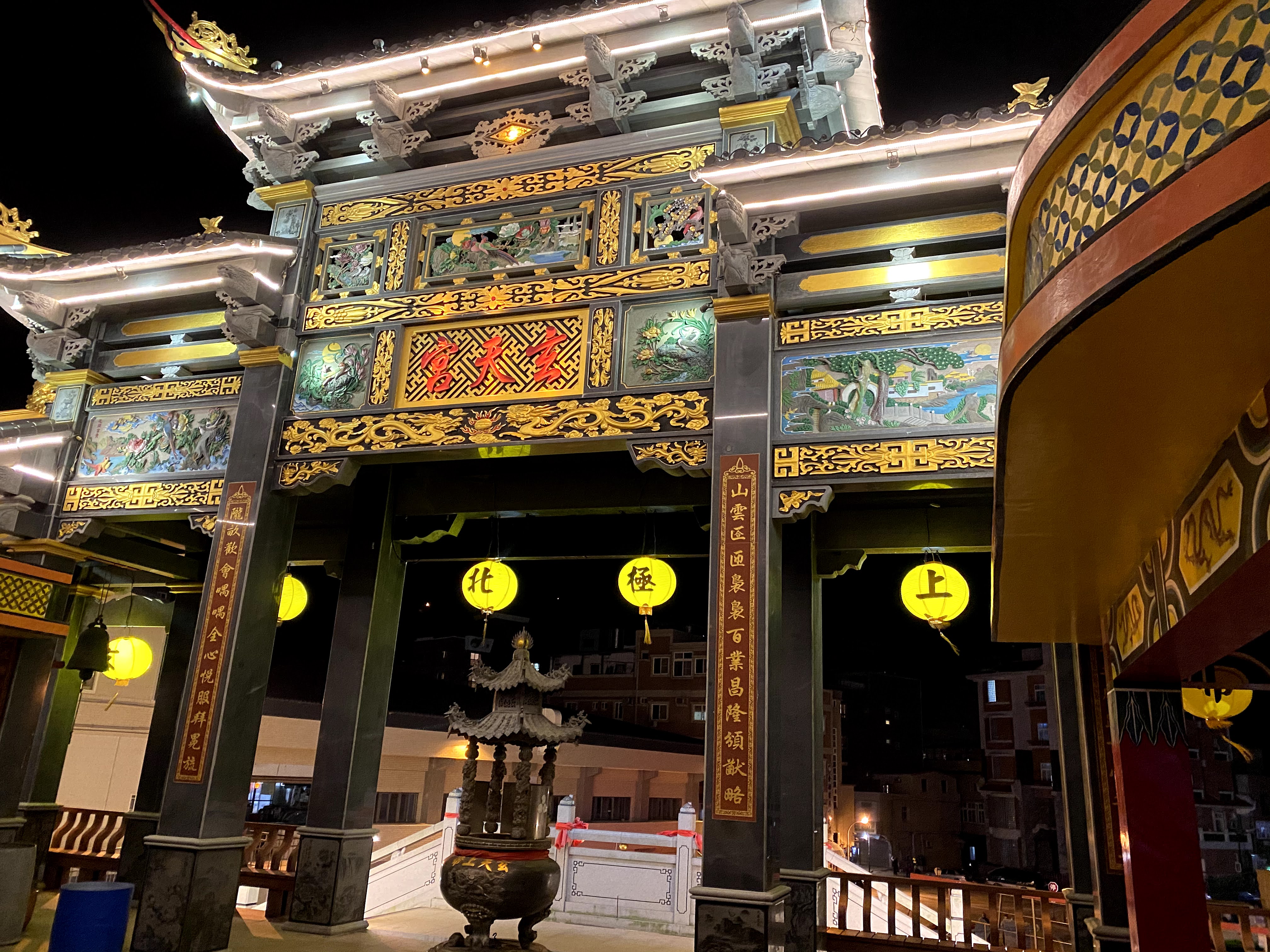 在山隴的尾端,有個打燈非常繽紛的廟宇