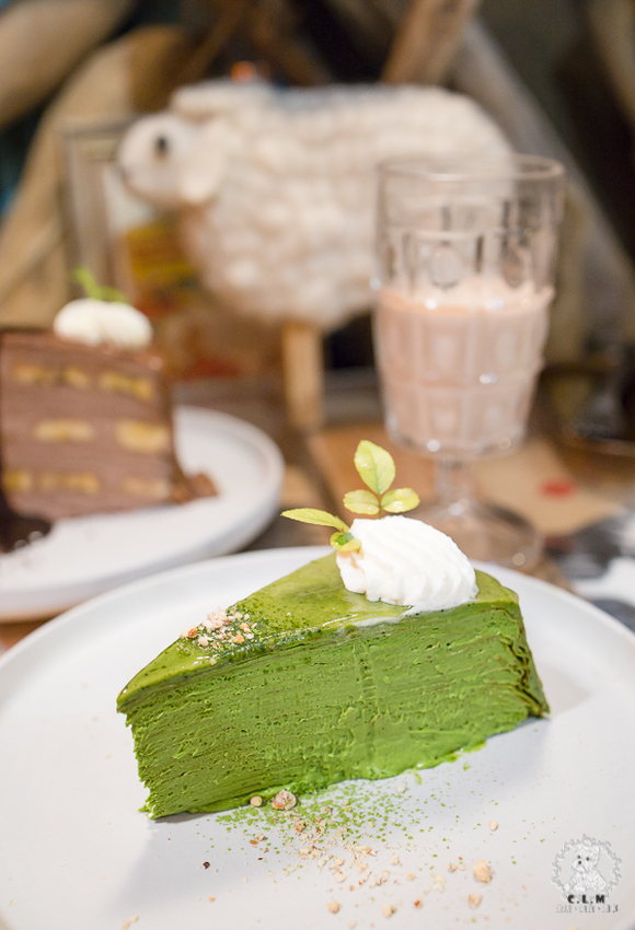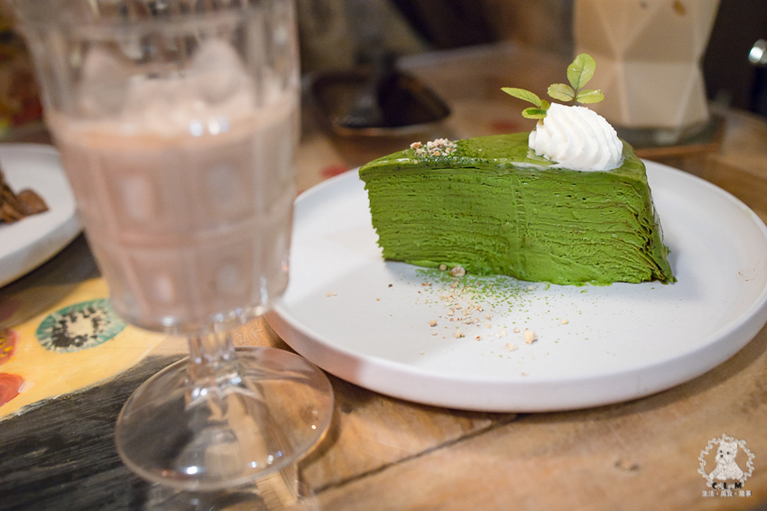 喜歡浮誇系列的我們看到就決定必點他了!會會他,就看他多浮誇。不過送上來時就只是個抹茶千層,另外給了一杯是什麼玩意?!原來是芋泥!原來是有COMBO組合技的呀!