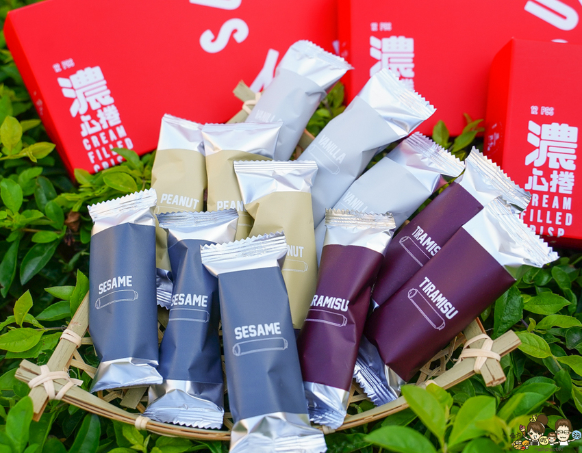 花生奶油濃心捲、提拉米蘇濃心捲、香草奶油濃心捲、芝麻奶油濃心捲