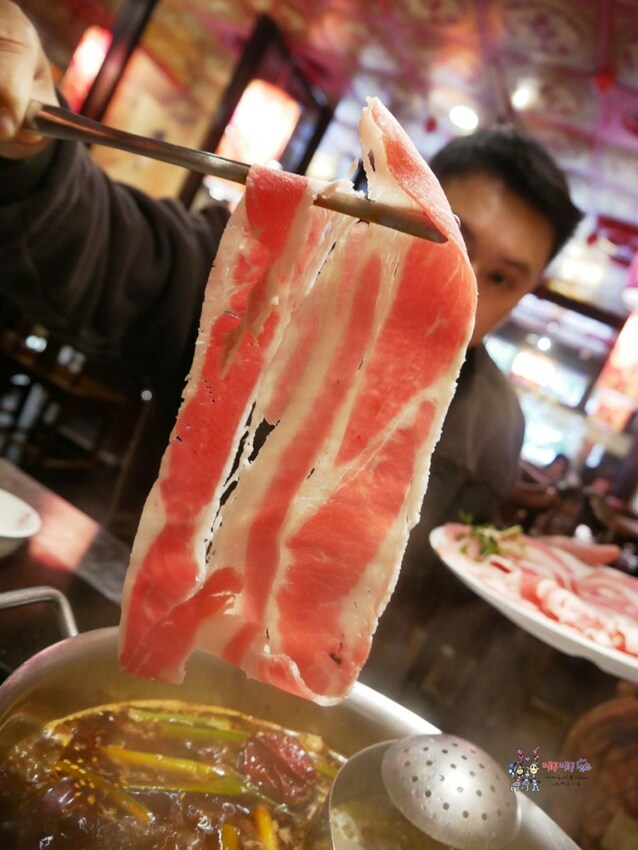 五花牛的部分偏肥,這是一定要放進麻辣鍋裡面煮的,我覺得也只適合麻辣鍋,五花牛本身的油脂搭上麻辣鍋的辣和油香,一入口就是非常滿足的感覺。