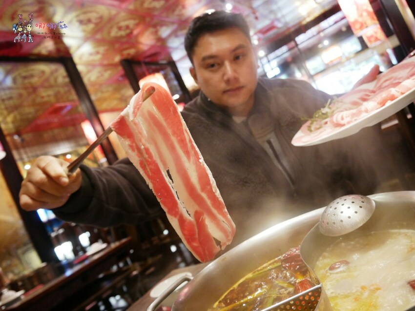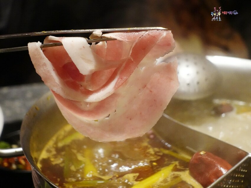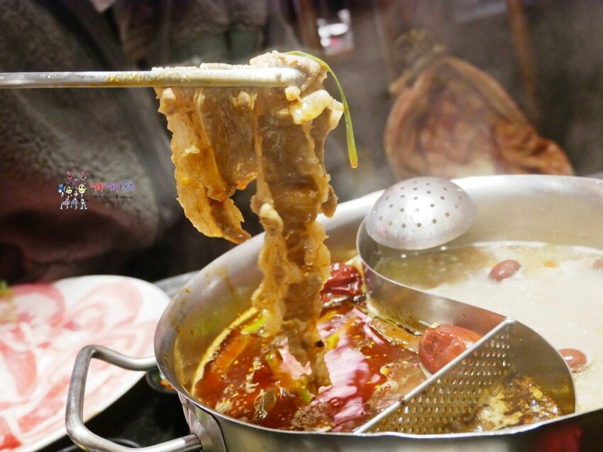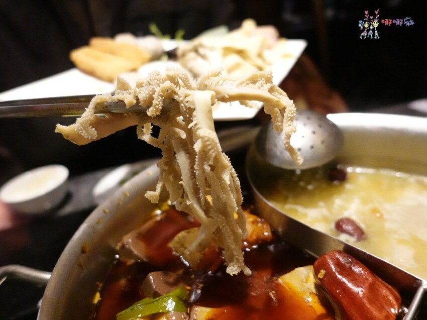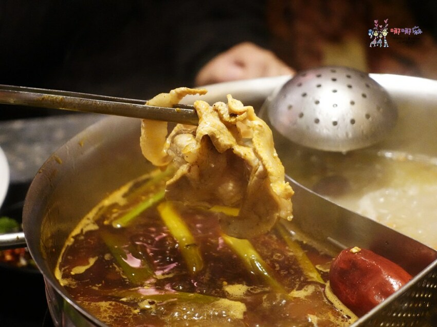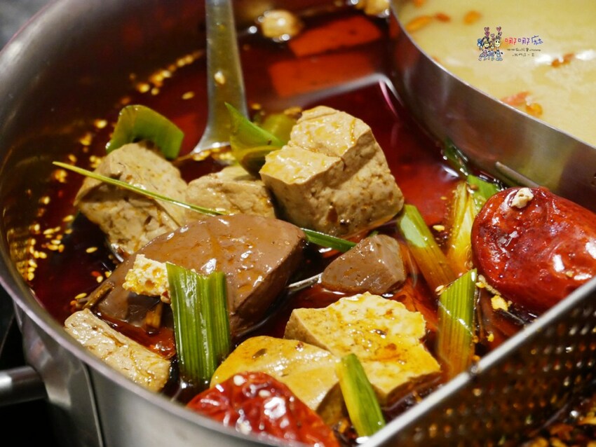 麻辣鍋湯底對於我們來說是比較偏中辣的,而且是用四川加入牛油的做法,味道比較濃郁,如果不是那麼能吃辣的話建議請店家調整小辣。旁邊的小格子裡面則是放置麻辣鍋的辣椒,這樣不會因為加湯而讓鍋底稀釋。