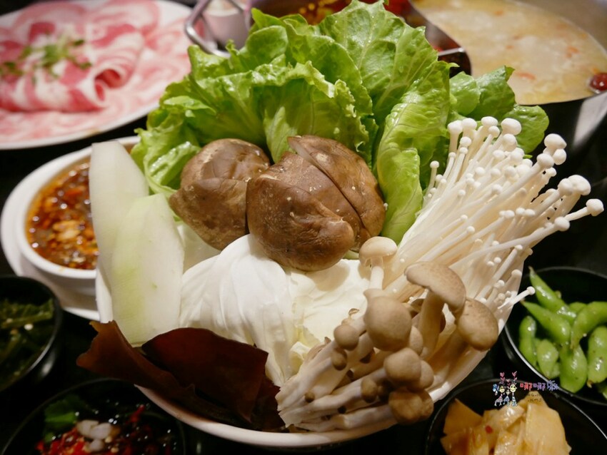 蔬菜就是一個肉吃多需要去油解膩的好幫手,值得一提的是他們的蔬菜拼盤沒有參雜一些廉價的火鍋料充數,是實實在在的蔬菜和菇類,阿寶一個人幾乎把全部的菜盤給吃了。