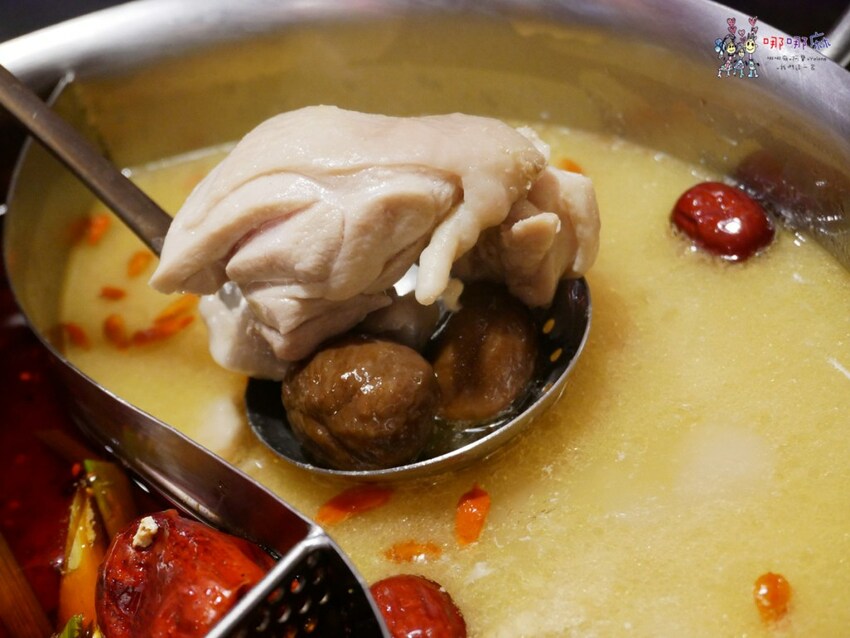 板栗雞這邊則是濃郁清香的雞湯,裡面放入雞肉、板栗以及豬肚,在鍋滾的時候不要急著下料,先盛一碗湯喝,濃郁鮮香的雞湯瞬間暖胃,讓我很想直接買一份外帶回家。