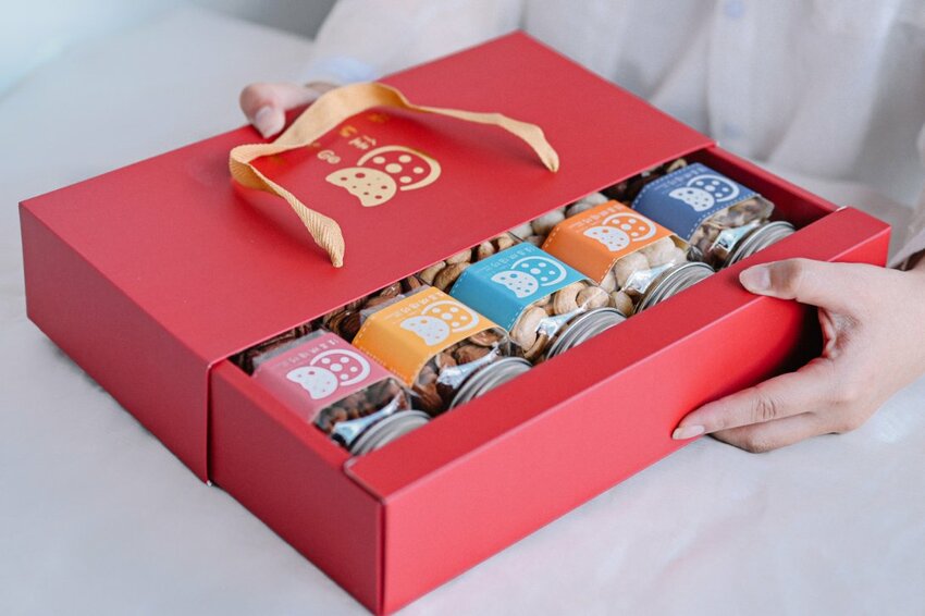 專屬禮盒可以選3罐裝或是5罐裝,禮盒內容物可以隨意挑選喜歡的堅果組合。