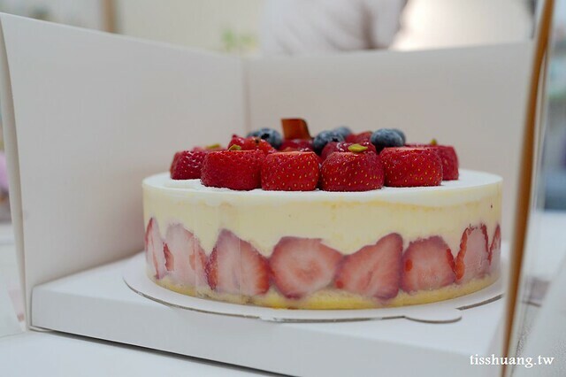 這款草莓芙蓮蛋糕給的草莓也太多了,蛋糕的主體用的是卡士達,傳統的蛋糕主體反而不是很多,喜歡吃卡土達醬的人一定會很喜歡這款蛋糕