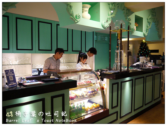 再往裡頭走一些,左手邊這邊就是他們家的大櫃檯,同時也能發現他們走水藍綠風~
