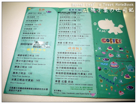 餐點的選擇還滿多的,主要分成~鬆餅、三明治、義大利麵、焗烤飯這四大類,