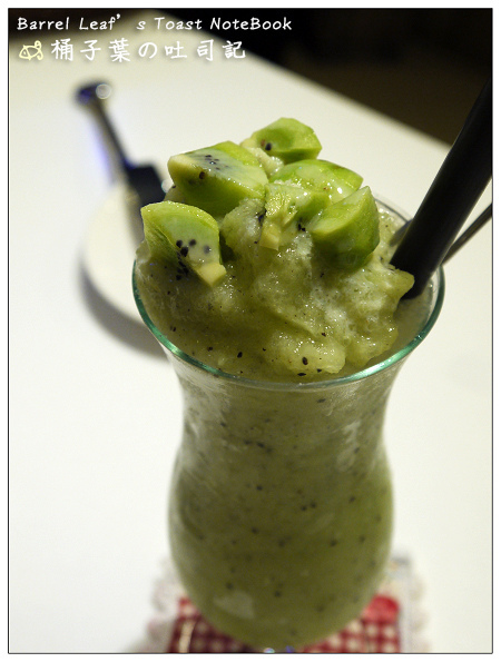 送上來這一杯賣相十足~尤其是一看到上頭的奇異果果塊就讓我大心,不過一喝之後,