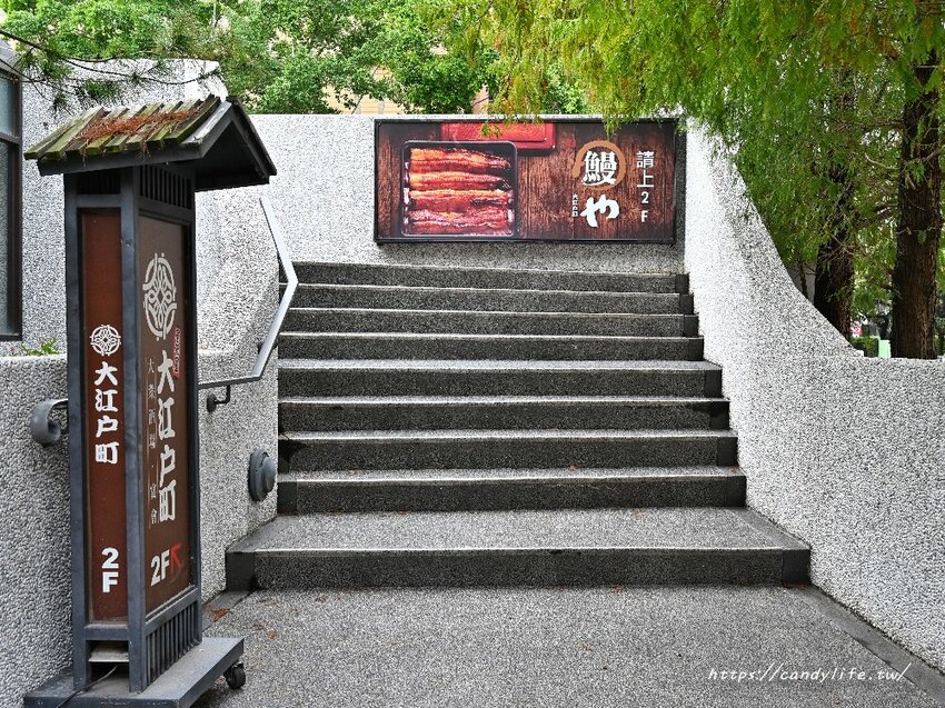 入口處有前門跟側門,糖糖建議從側門進來(距離停車場比較近的門),直接上二樓就是大江戶町鰻屋囉