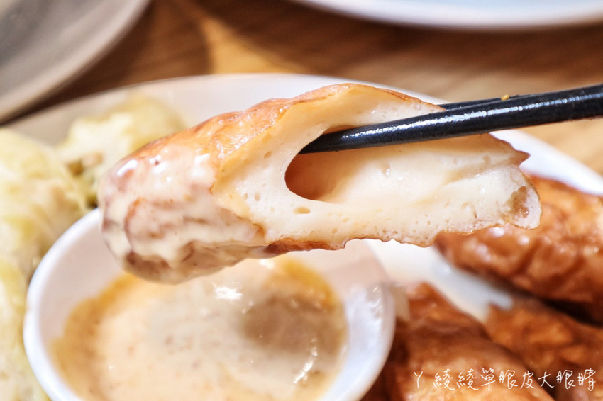 日式厚燒竹輪口感好軟哦,果然很入味。比較特別的是赤麵廠的關東煮,會免費附上日式胡麻醬佐黃芥末,口味濃郁而清爽,卻又多了一絲微嗆辣感,我覺得超級好吃!完全不同於台式關東煮醬耶!