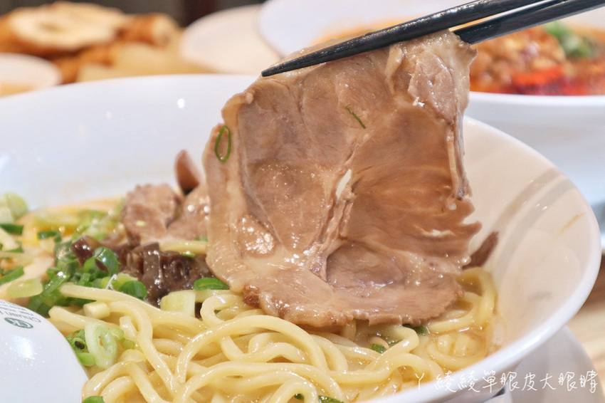 麵條選用中粗麵,軟硬度可以請店家依照喜好調整喔!吃不夠還可以免費續麵一次!