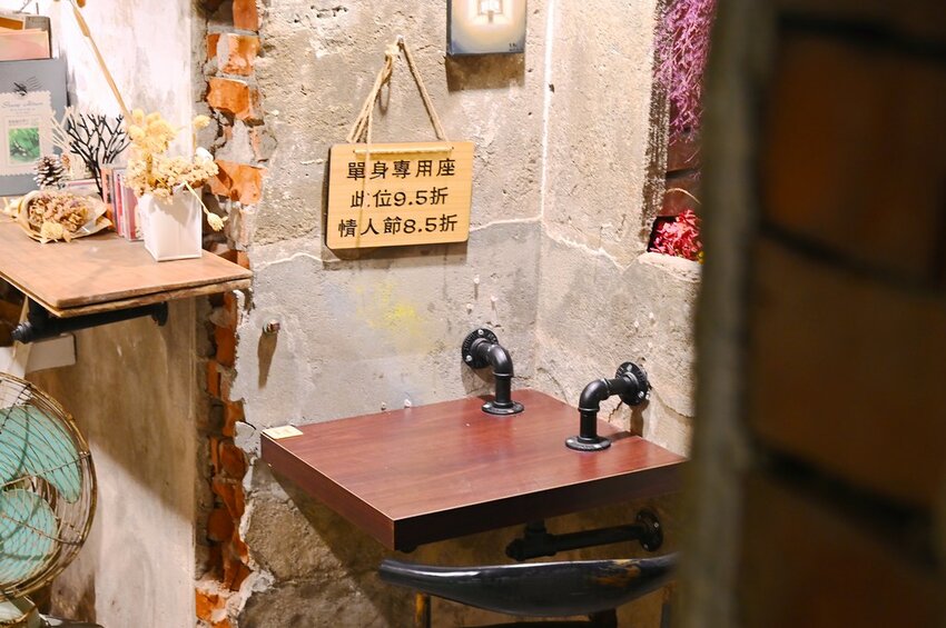 夏天也不用擔心是個有空調冷氣的空間,從裡到外的每個角落都是非常有味道的拍照場景與背板。裡面還有個專門提供給單身魔法師專用安靜獨享用餐的位置,旁邊還幫你佈置了漂亮場景可以自拍XD單身吃飯不用擔心別人目光,