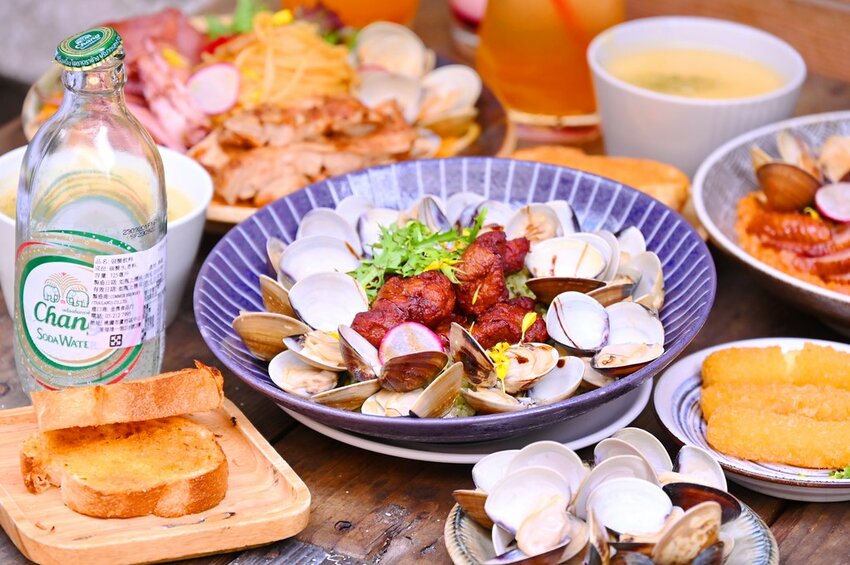 「加價升級套餐有四種」,分別是80到135元,每種都有濃湯和現烤法國麵包,四種套餐不同價位會搭配薯條、酒蒸蛤蜊、炸莫札瑞拉起司條、舒肥魷魚佐五味醬,酒蒸蛤蜊我還蠻推薦的。