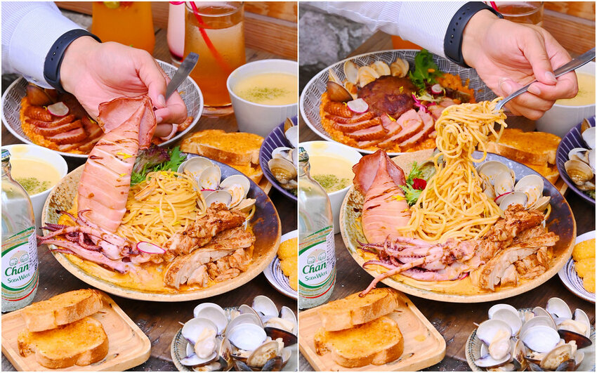 也有非常多肉類跟海鮮可以選擇,價格絕不會是一中街最便宜的義大利麵,可是一定對得起高沐提供的份量跟口味,可能在台中也沒幾家能做到這樣的。