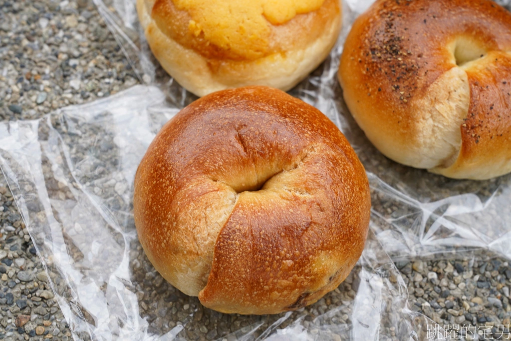 貝果看起來真好吃^^ 他們有好幾種口味,跟老闆閒聊一下,老闆以前在兄弟飯店做麵包,感覺蠻期待的,我來吃吃看^^