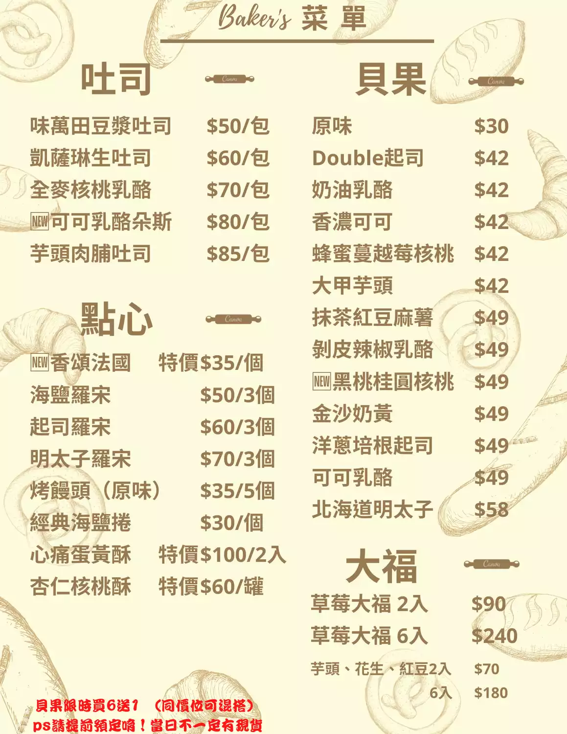 - 麥造烘焙菜單