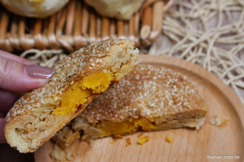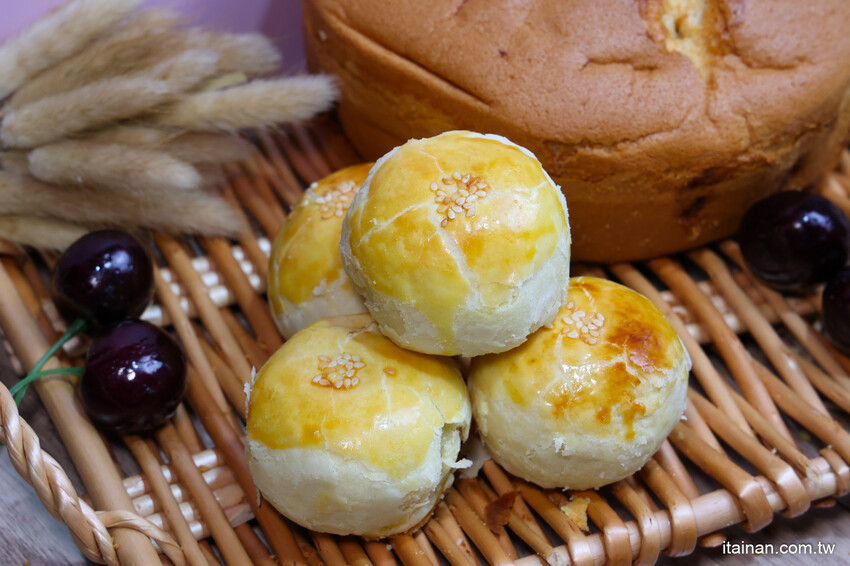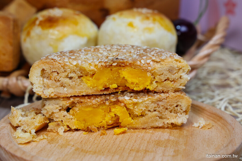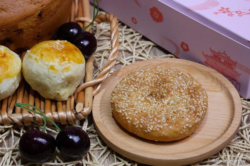 也是傳統中式糕餅代表的芝麻酥餅,層層酥脆又香甜,裡層加了蛋黃外層還有白芝麻,由裡到外香氣滿滿,尤其我很喜歡這款的餅皮,帶點酥脆咀嚼時嘴巴滿是香氣呢。