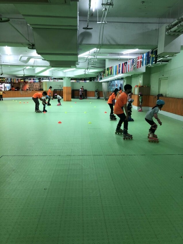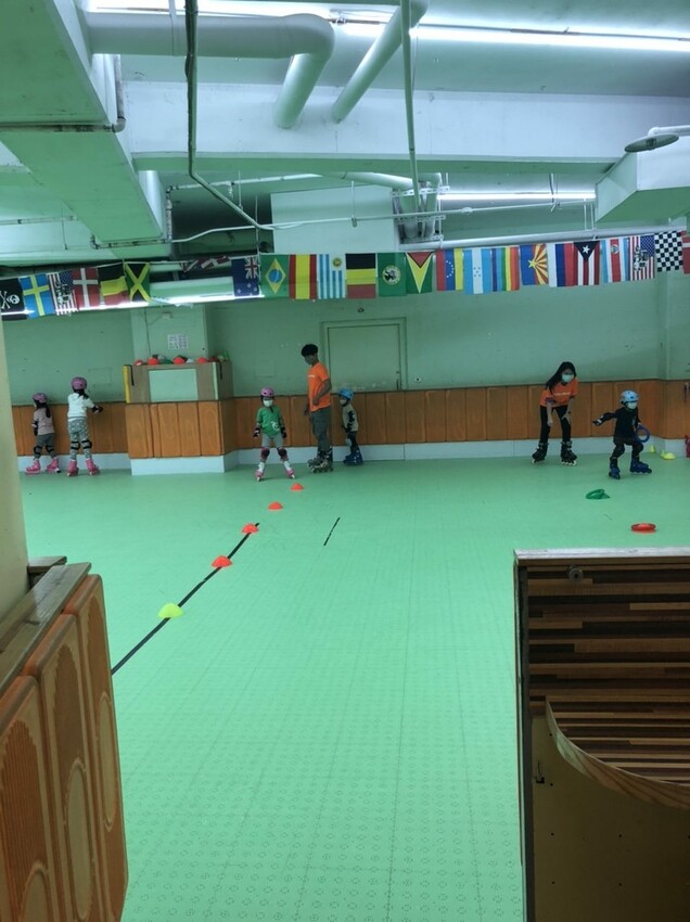 300坪寬敞舒適的室內空間,讓運動場上其他練習的小朋友(直排輪上課年齡為4-8歲),都能盡情地練習、放電,9-12歲進階為直排輪曲棍球,更富有挑戰性