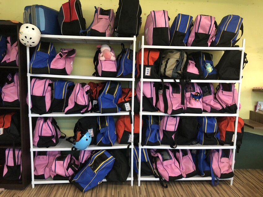 學生專屬置物櫃,可置放直排輪教具,不需提著沉重的設備回家、上課,讓肩膀減輕負擔