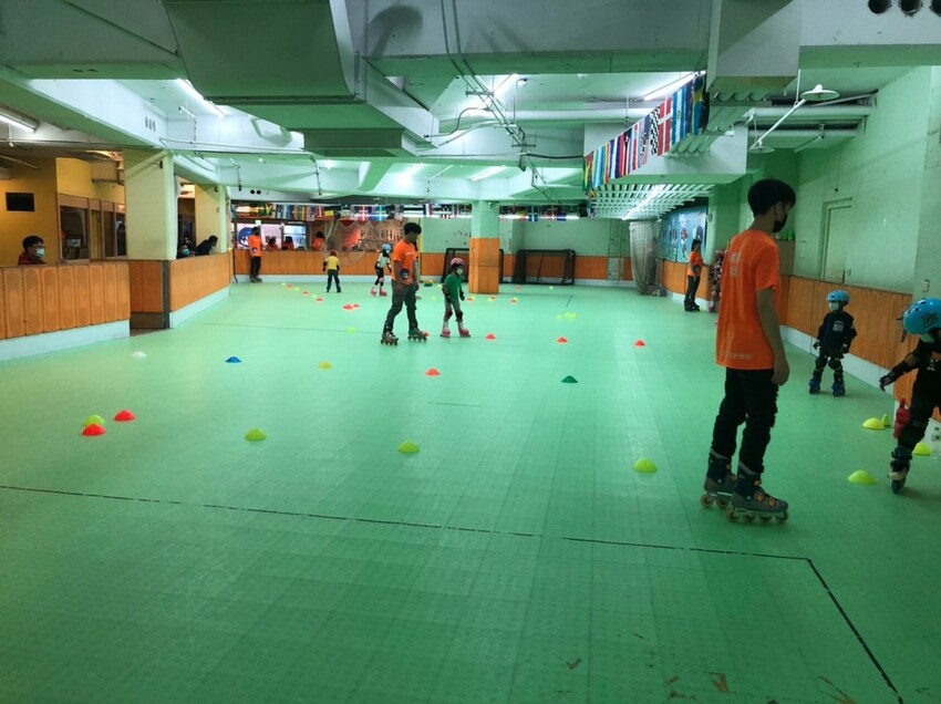 針對初學者,教練從最基本的動作開始教起,如:繞行、剎行、基本站立、雙腳抬腳、弓箭步移動、推刃滑行、正確踩刃….等,打穩直排輪的基礎,而這裡的場地會分級(初級、1級、2級、3級)上課,每場都有12名以上的教練排班上課,不用擔心程度跟不上