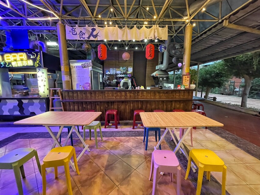 往裡面走,就會看到這間「老食人」啦!是在今年三月左右才開幕的店,沒想到開幕沒多久就碰上疫情,但還好老闆在短短時間內就養了不少回頭客,不然那波疫情真的是搞得人心惶惶呀!回歸正題,「老食人」雖是戶外式的用餐空間,不過這樣更顯得有在地人情味,也更有老闆想傳達的日本風情。