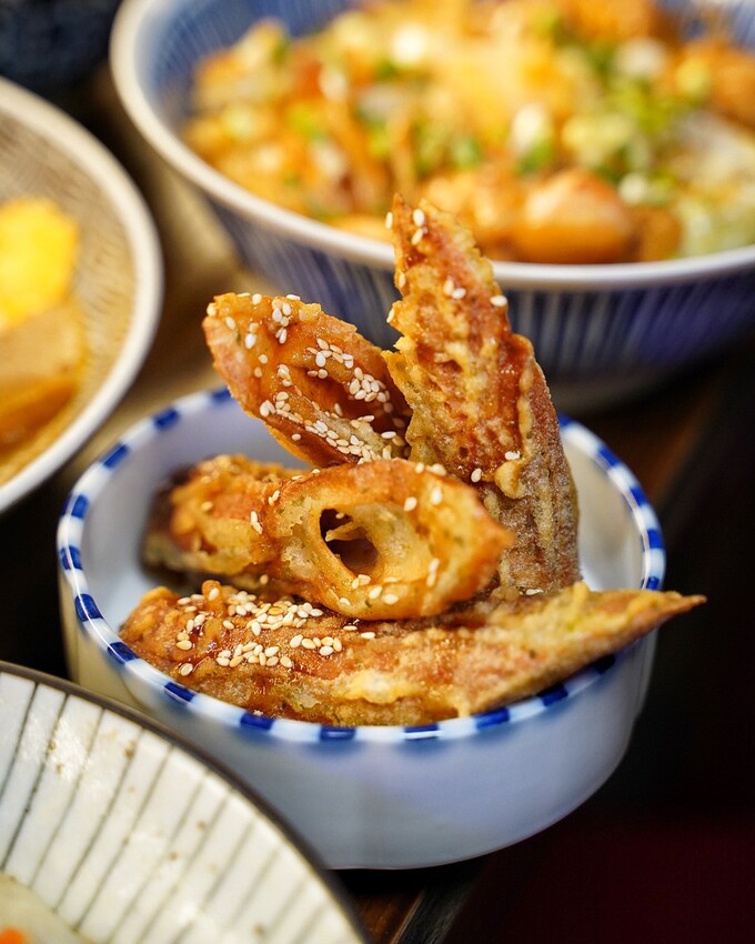 再來的「磯邊海苔炸竹輪」真的是我的菜,大推!選用高品質大又厚實的竹輪,裹上充滿海苔的麵衣大火下去油炸,起鍋後淋上豬排醬,再撒上白芝麻,口感飽滿彈牙且充滿海苔香氣,非常涮嘴好吃!