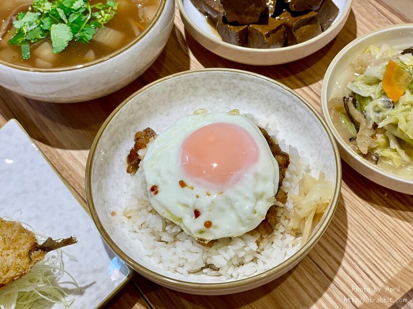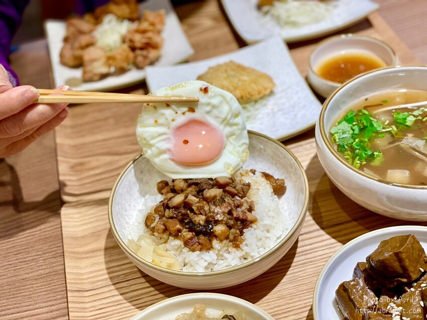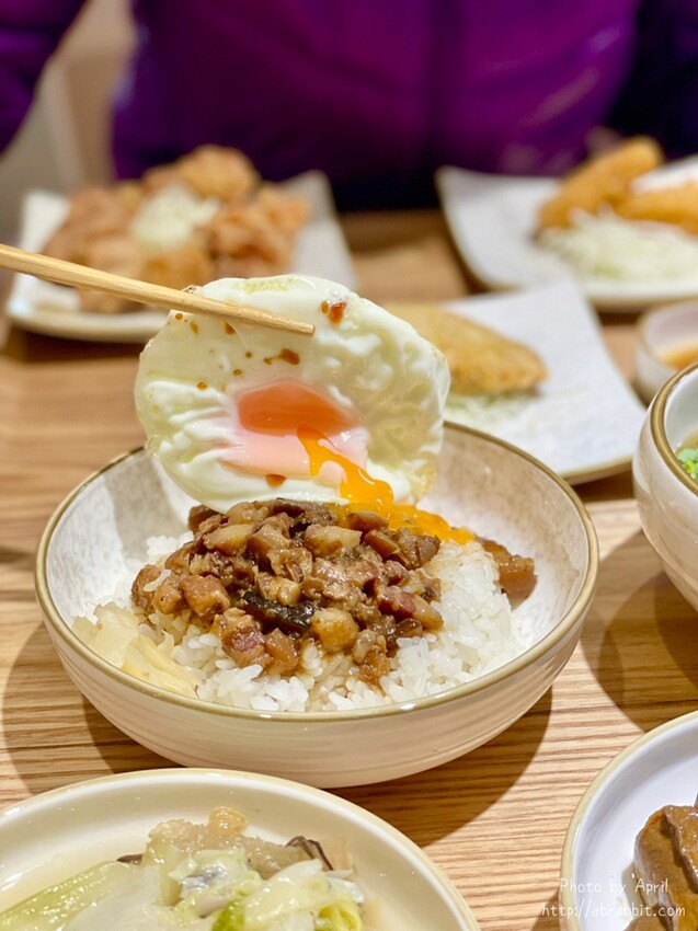 先來介紹一下邪惡的半熟蛋配上滷肉飯,邪惡的搭配一定要來一份,我最近超愛吃魯肉飯,早餐都想來一碗又肥又邪惡的魯肉,看到這個搭配當然要給他點下去!