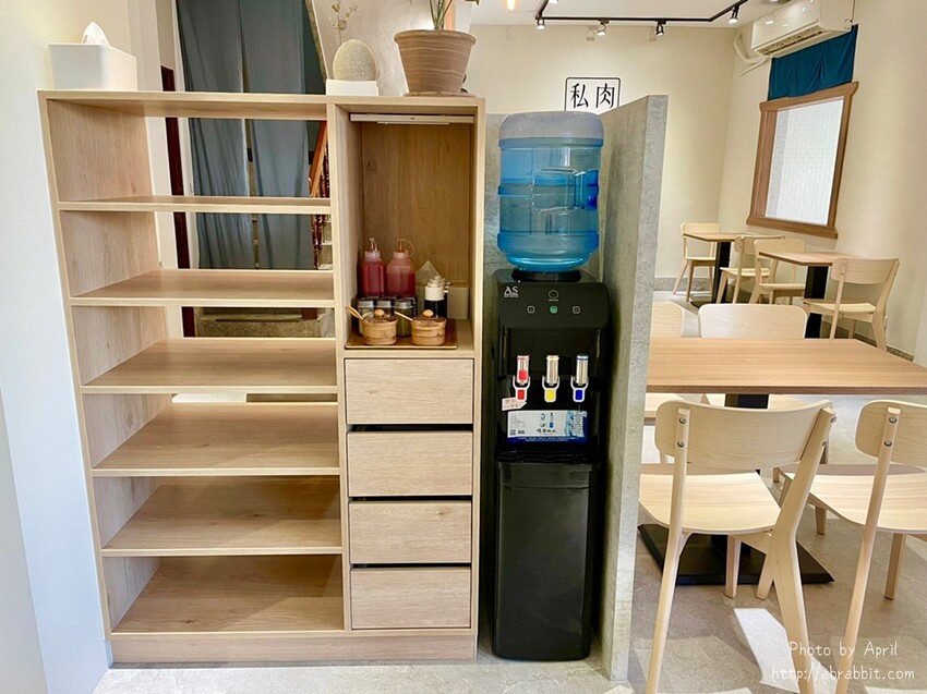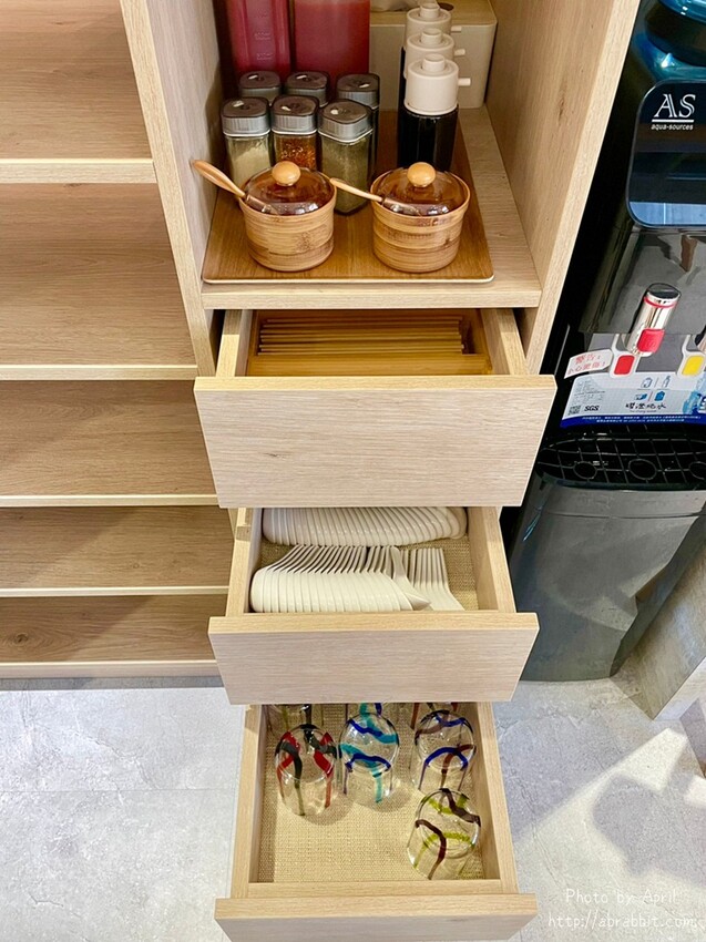 醬料區和餐具也在一旁的櫃子裡面,一旁還有水可以自行取用。