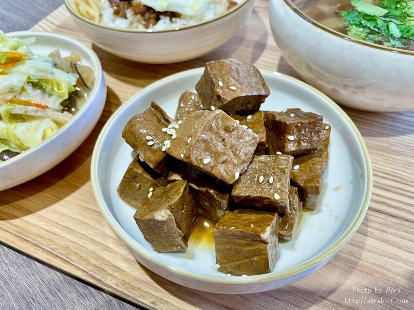 豆干的話和以前也不太一樣,現在多了一些微微的辣味在裡面,以前的比較甜一點。但依然好吃,我二訪帶著家人一起再去吃一次,英國寶超愛這個豆干欸。