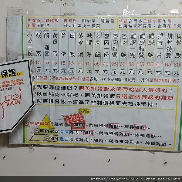 阿英排骨飯招牌很有古早味,一看就知道是有歷史的店家,原來是飄香一甲子的老店,一上門老闆就非常熱情,對每一位顧客清楚的說明排骨是用中藥滷過再下去炸的,台面上的配菜看起來也很新鮮沒有覺得已經賣到剩下的感覺。