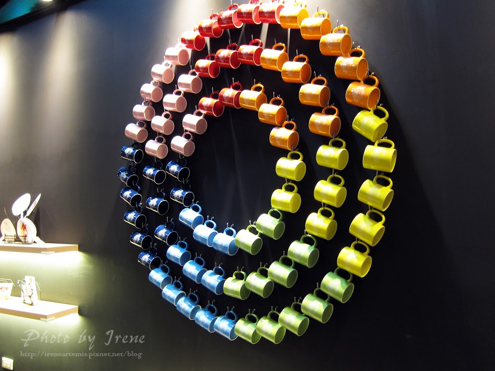 在這一區最喜歡的就是這一套杯子了,顏色真的好繽紛唷!要不是家裡杯子實在太多,真想整組買回家像展場這樣擺著呢!