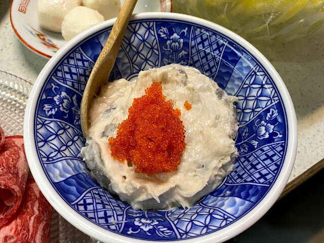 花枝蝦漿,上面還有大量的飛魚卵做點綴,