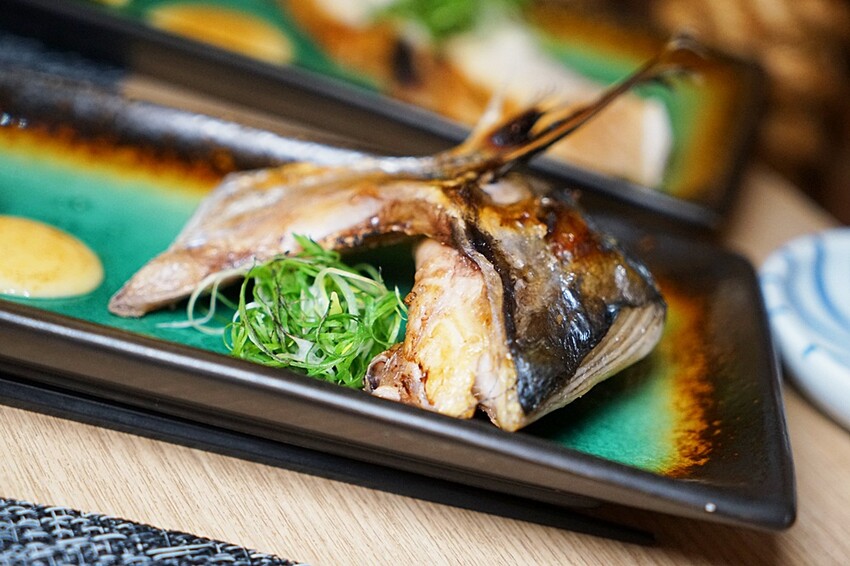 燒物:鹽烤午魚(搭配:蜂蜜芥末醬、火龍果醋凍)