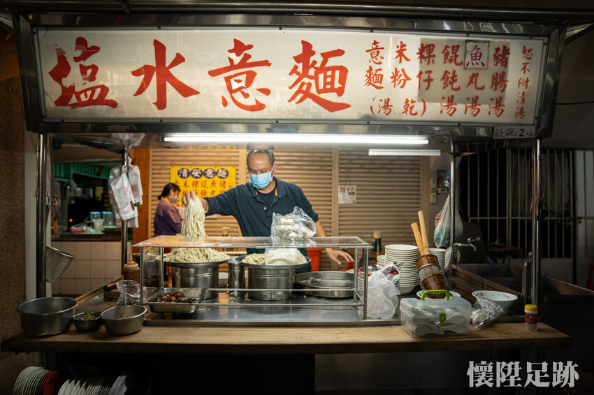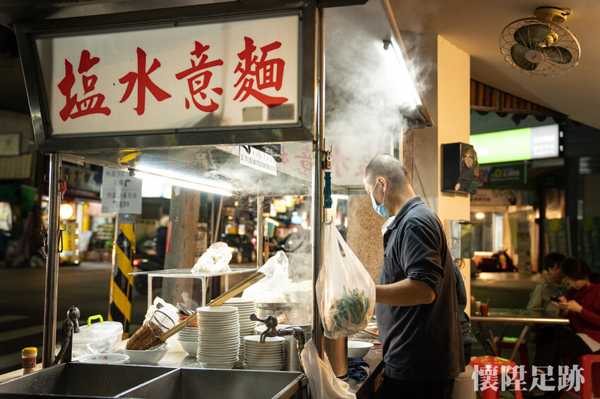 鹽水八角樓附近的塩水意麵攤飄著陣陣煮麵白煙,老闆忙碌的煮著意麵,坐在騎樓下的客人各個吃的一臉滿足,找了個座位,點了碗麵,在鹽水吃著塩水意麵宵夜,特別滿足。
