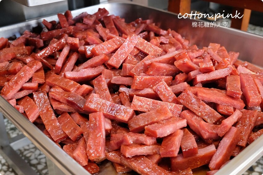 店裡的肉乾用的都是台灣豬肉來製作,選用的豬肉品質也很好~吃一口就知道,那彈性、那口感~都騙不了人!而且還不只主角豬肉精挑細選~連配料們也不惜成本,油品使用椰子油~比較不會變質,調味用的鹽使用沙漠湖鹽,成本上就是一般鹽的好幾倍~但是鈉含量少很多,讓大家吃得開心也吃得健康!