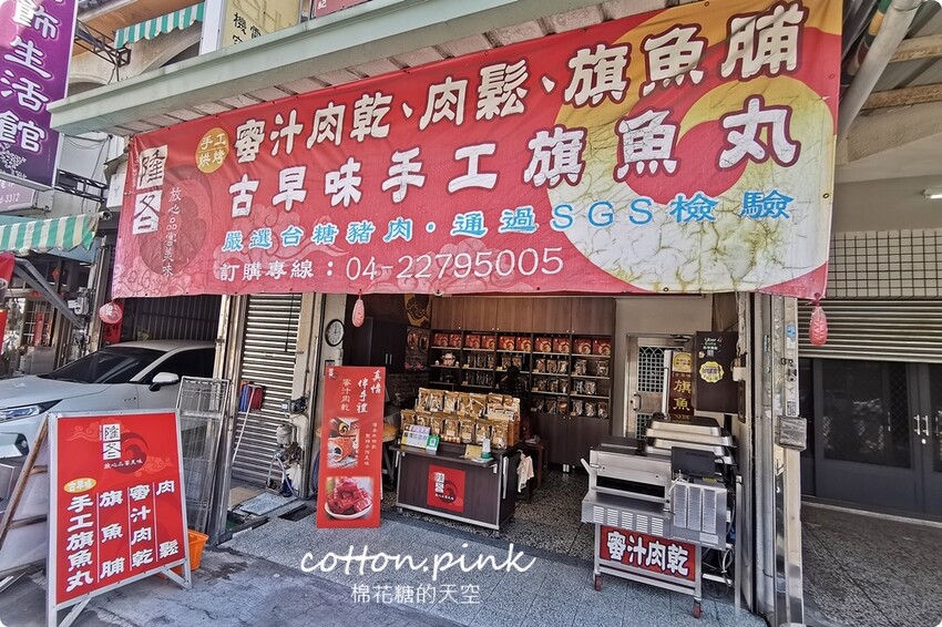 隆冬肉乾低調的店面開在台中太平宜昌路上,沒有豪華裝潢的店面~路過很容易就會錯過了,對面就是連續幾年獲得米其林必比登推薦的彭城堂台菜餐廳,大家也可以認這個地標~沒想到隔一條馬路兩家店都很厲害啊!