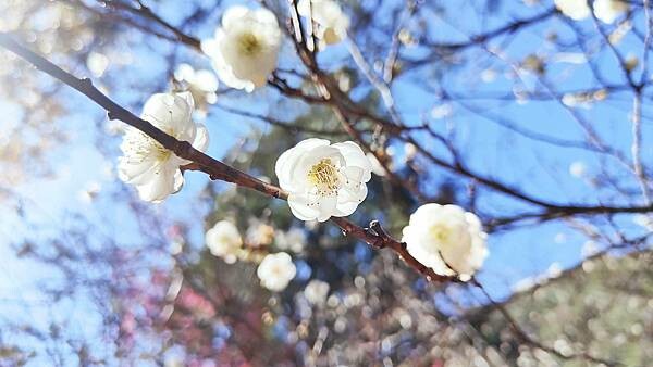 可以看到白色的梅花、桃紅色的梅花