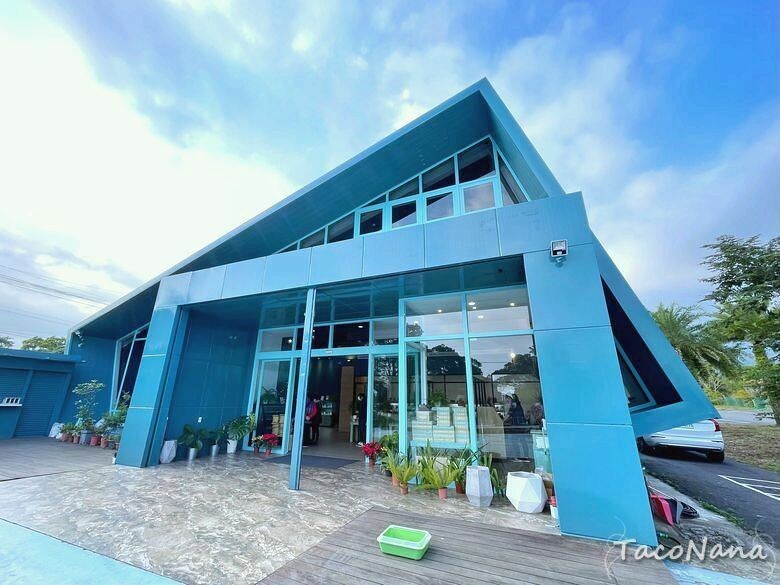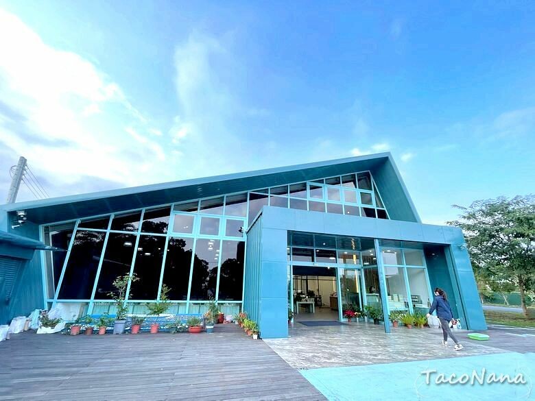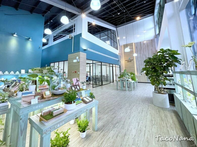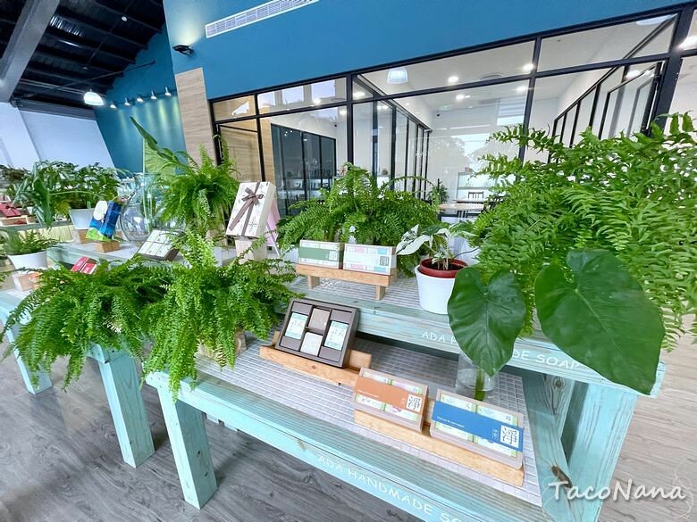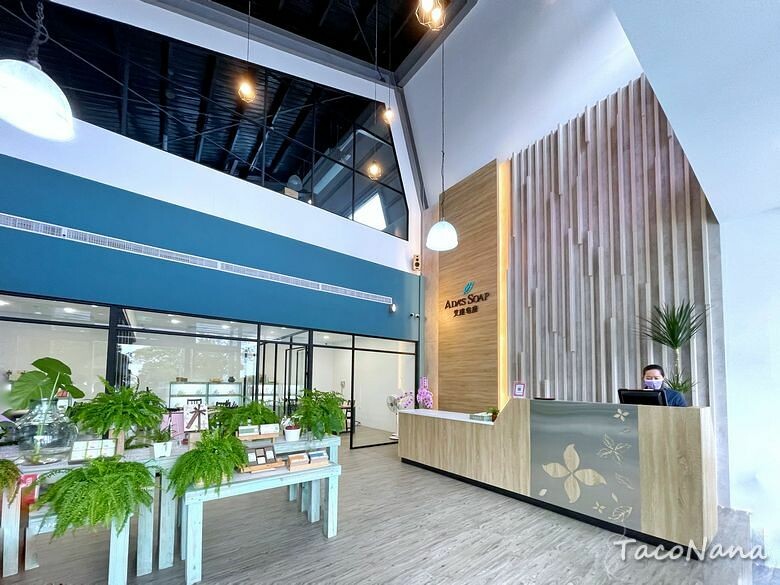 自從愛上喇皂後,發現皂房的敏銳度也提升了!遠遠就看見艾達皂房與美美的藍色建築,有點像玻璃屋,但又不完全是玻璃屋,相當有特色!戶外場地也相當大,很寬闊的感受。