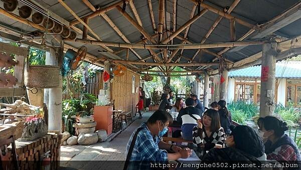 田寮農莊外面有一片很大的波斯菊田,還沒進去農莊裡吃飯就先養眼的看了花海,門口的招牌非常的古色古香,裡面一進去不是你想像的餐廳畫面而是以前農作留下來的器具,裡面有很多小角落可以讓你坐著休息,順著路往前走就可以看到櫃檯會有人帶你入座。