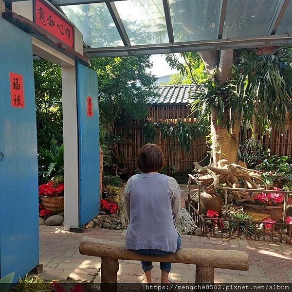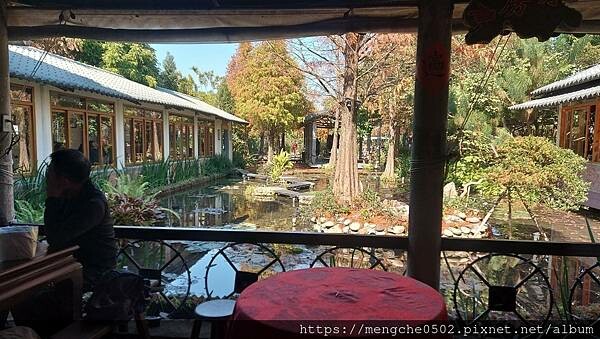 吃飽了以後我和友人到他們的後花園散步,他們的園區真的很特別中間是一個大池塘旁邊竟然還有落羽松林圍繞,以磚瓦屋為背景知識中的小石步道看起來格外的有意境,池裡還開了蓮花,我覺得我拍得好美,超適合當長輩圖的啦!