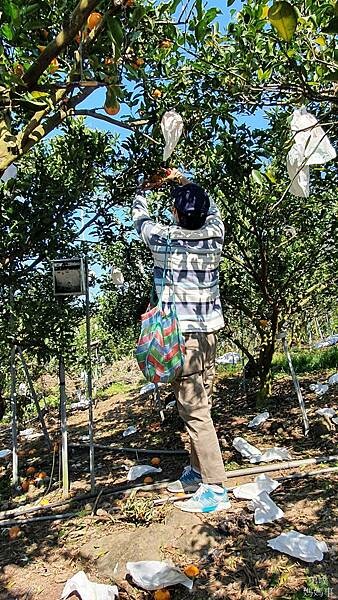 採橘子老闆說只要套子內的橘子呈現橘色就可以採,白色套袋可以不用拆掉,會保存比較久,因為我們實在太外行,每個套袋都拆開實在拍謝