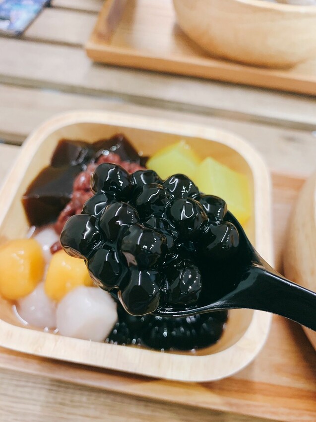 我好喜歡范力人豆花剉冰大龍店的珍珠~~本身珍珠的味道不會很甜膩,非常有嚼勁Q彈~~可以咬很久的那種~~