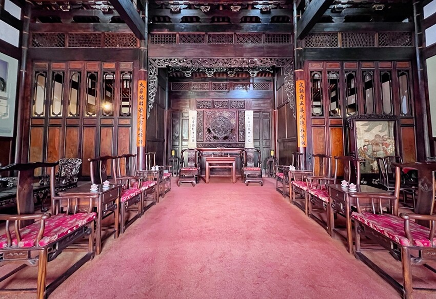 大花廳,為五開間三落之格局,1890年興建至1894年左右完工,福州式的戲台與特色卷棚作法也是台灣唯一,大花廳也是林家當時宴客與看戲空間,當時可還有專屬戲班,就好比現在的招待所、私人歌劇院,這也是象徵著林家的鼎盛時期。