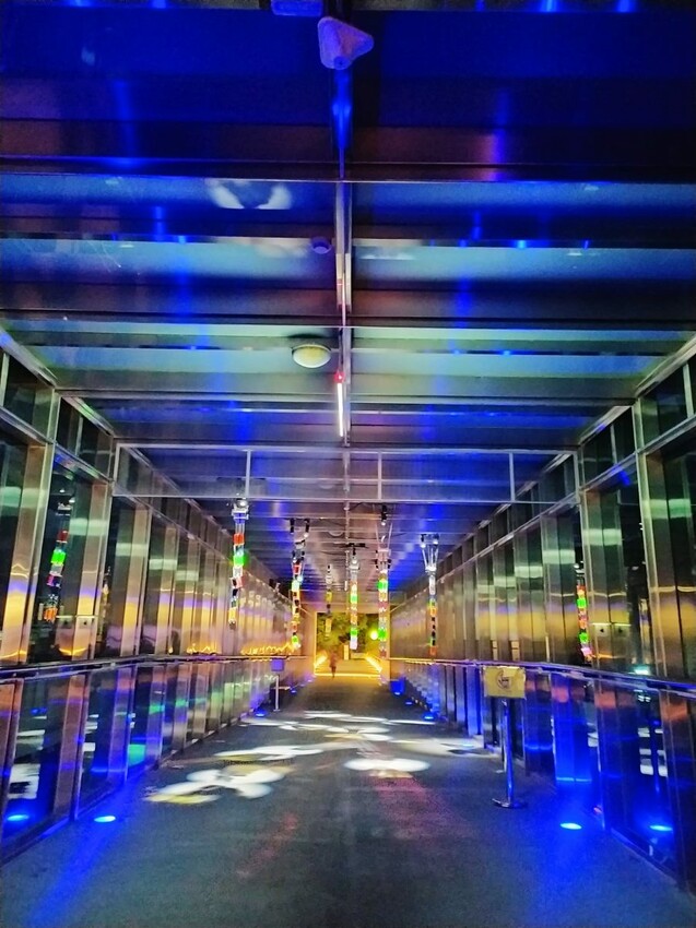 在戶外拍了好一陣後,沿著樓梯走上來,空橋走廊上還有另一種景象
