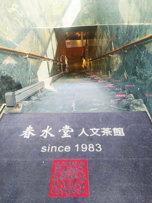沿著樓梯往下走即可抵達春水堂國美店,入口處的地毯還特別標明Since 1983