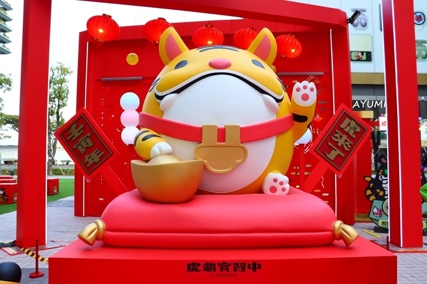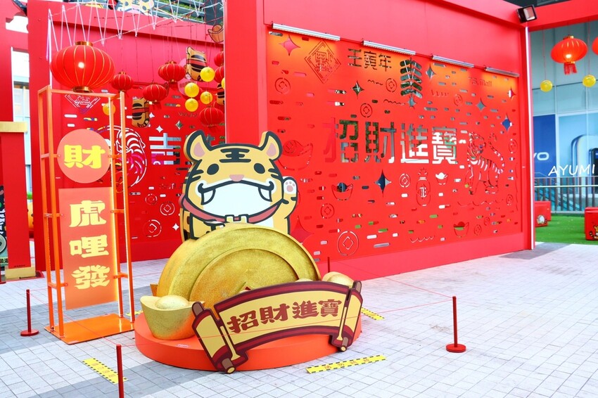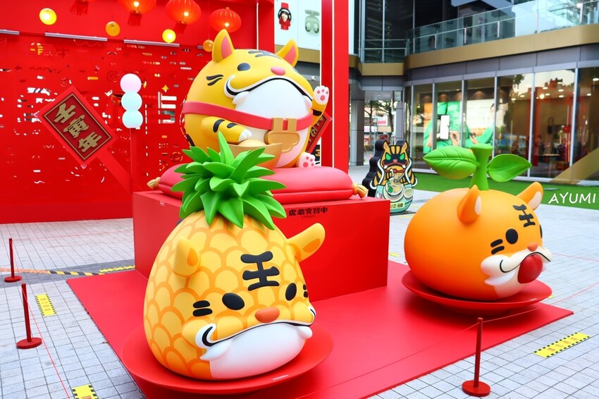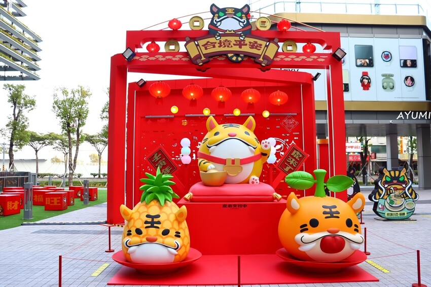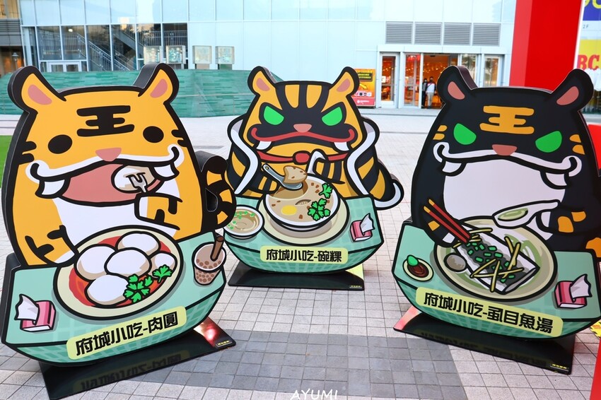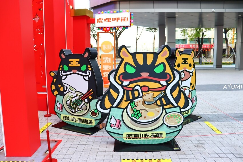 以三尊虎爺品嘗虱目魚、肉圓、碗粿等府城小吃的形象呈現